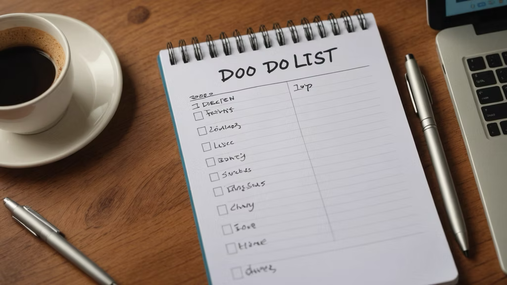 A close-up view of a hand-written to-do list entry on a notebook